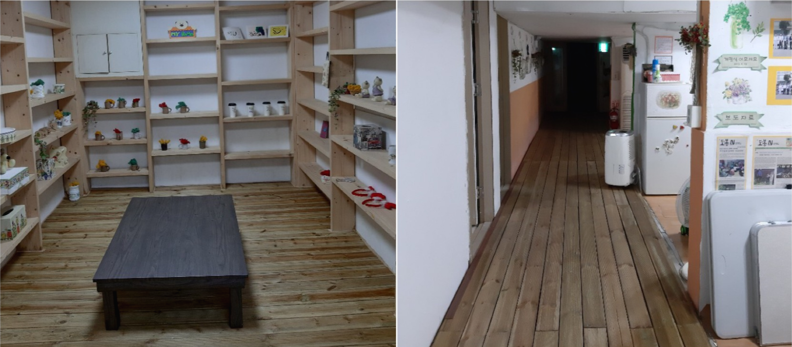 그런데 주민분이 재료비만 받고 바닥에 나무를 깔아주셨다.