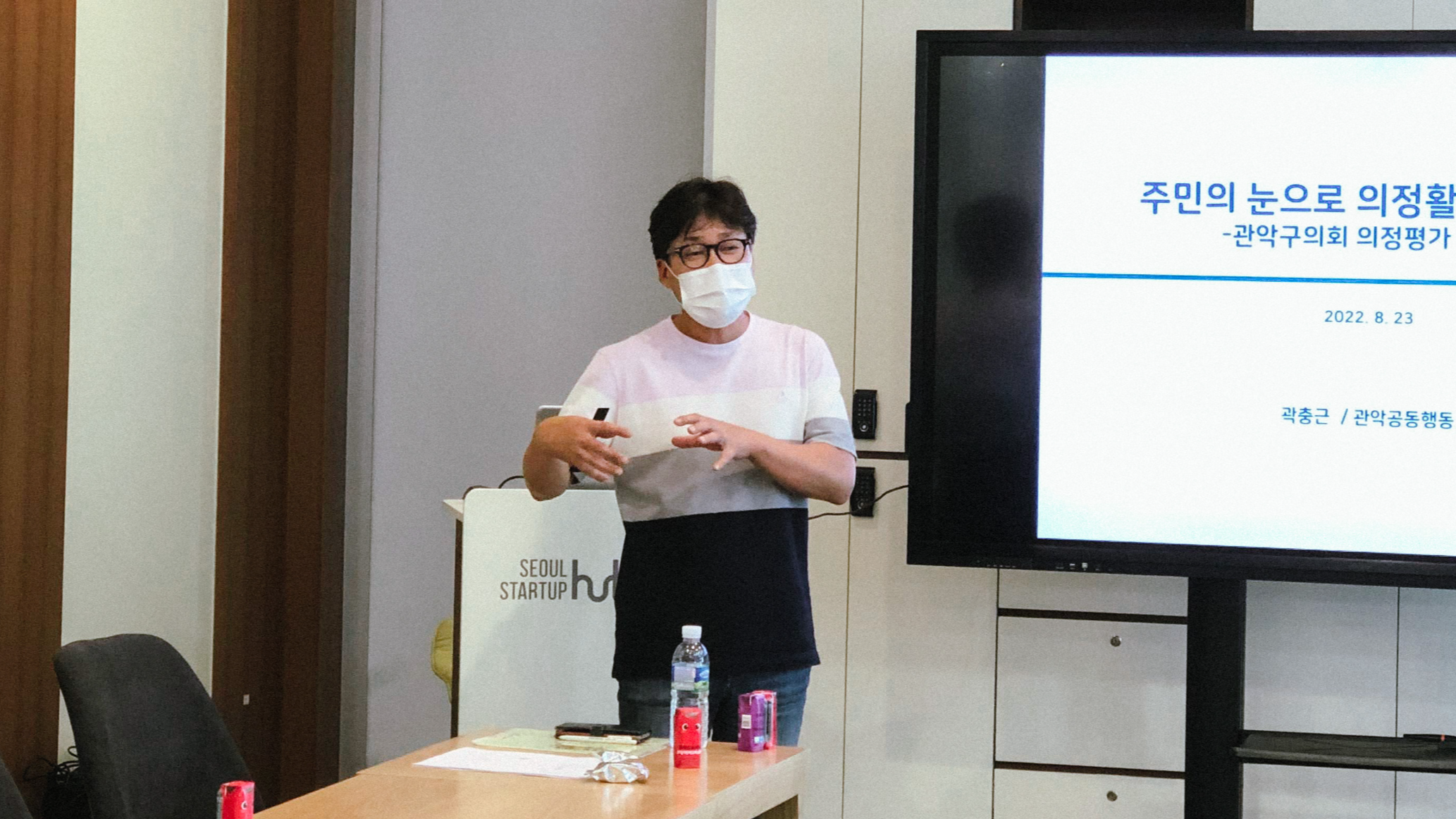 지난 8월 23일 화요일, 2023년 전략 수립을 위한 기획 강연 「마을 안에 시민정치」의 첫 번째 강연이 있었어요. 곽충근 관악공동행동 협동사무처장님을 통해 관악구 의정평가단 활동 사례에 관해 자세히 들을 수 있던 좋은 기회였죠.