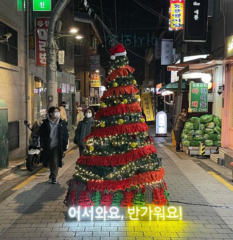 특히 이번 쌍리단길겨울축제는 참 즐거웠는데요. 저희에게 쌍리단길축제는 각 점포들의 공간의 영업 환경을 최대한 유지하면서 거리 곳곳에 방문객들에게 재미를 주는 요소를 연출해야 하는 과제가 있었어요. 마침 비어있는 공간이 있으니 구청의 협조를 받아 그곳을 활용해 보자는 아이디어가 있었어요. 그중 쌍리단길의 '시작'과도 같은 곳인 노말키친이 얼마 전 혜화로 매장을 옮기면서 빈 공간이 되어 현재는 구청이 주차장 부지로 건물을 매입해 놓은 상태라 이거다 싶었죠. 역사와 같은 노말키친 간판이 남아 있는 공간을 크리스마스 포토존으로 활용했었어요. 오시는 분들마다 "여기 맛있었는데 없어져서 아쉽다" 등등 기억을 소환하는 장소가 되기도 했어요. 또 그날은 크리스마스 분위기를 연출하기 위해 거리마다 트리를 설치하기도 했는데 입구를 장식할 트리가 특별했으면 좋겠다고 생각했어요. 도봉 하면 양말, 양말로 트리를 만들면 어떨까 생각하던 차에 '도봉양말협동조합'을 운영하시는 강대훈 이사장님께서 요즘 좀처럼 찾기 어려운 빨간 양말을 기부해주셔서 완성된 트리도 있었죠. 너그러이 전력을 공급해주신 각 점포 사장님들 덕분에 트리들이 반짝반짝 빛날 수 있었어요.