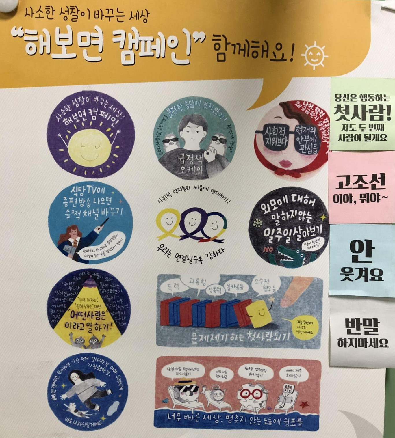 민우회는 건강한 조직문화, 평등하고 서로 존중하는 문화를 우리부터 시작하자는 의미에서 나이 학력 출신지역등을 묻는 인사를 하지 않고, 모두를 선생님이라 호칭하며 존중한다. 그래서 그 시절 만났던 회원들의 나이를 정확히 알 리 없다. 다만 먼저 이곳에 계셨고, 아이를 낳아 키우거나 지역에서 활동했기에 내게 언니였다. ‘내가 여성주의자다’, ‘페미니스트다’라고 생각하지 않았던 것 같다. 내가 이것과 상당히 맞닿아있긴 한데 이것이 내가 세상을 바라보는 창이라던가, 기준이라던가, 철학이라고는 미처 생각하지 못했던 것 같다.