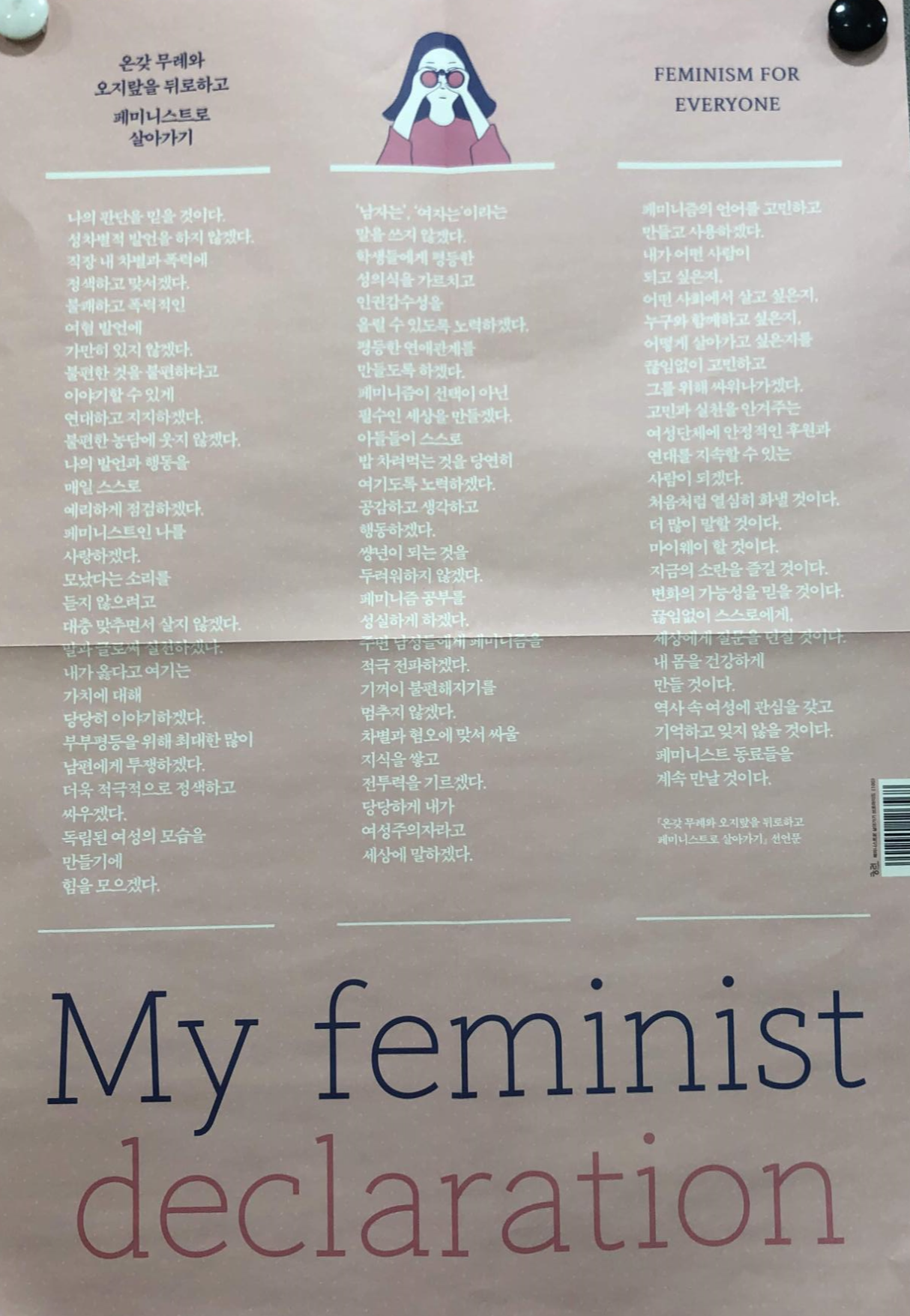 사실 나를 가장 힘들게 한 것은 배우자다.(웃음) 요기까지만. 지금은 든든한 지원군역할을 해주고 있다. 20년만의 가장 큰 성과다. “나는 페미니스트야” 라고 말하기 시작했더니 세상이 나에게 너무 각박하게 다가왔다. 이는 여전히 우리사회가 젠더불평등이한 사회라는 것의 반증이라는 생각이 들게 한다. 장자연사건, 승리, 김학의에 이르는 수많은 이 남성들의 공고한 카르텔 성평등 세상이 너무 요원한 게 나에게 가장 힘든 지점이다.(웃음)
